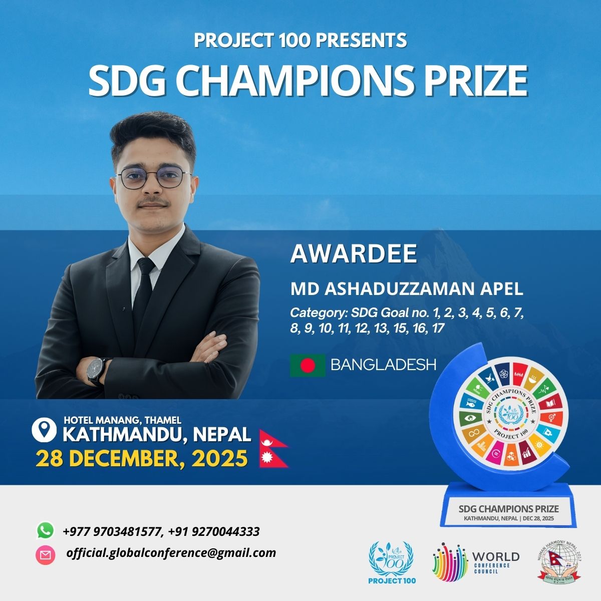 UN SDGs CHAMPIONS PRIZE; Organized by: Project 100 and INROLL-MENTOR